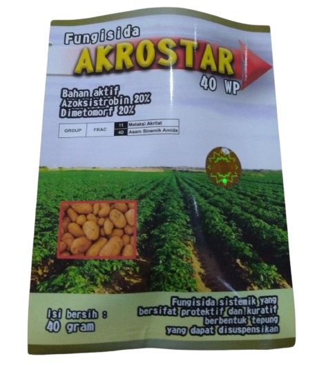 AKROSTAR 40 WP adalah fungisida sistemik dengan dua bahan aktif unggulan, Azoksistrobin 20% dan Dimetomorf 20%. Kombinasi ini memberikan aksi ganda yang bersifat protektif (mencegah) dan kuratif (mengobati), menjadikannya solusi ampuh untuk melindungi tanaman dari serangan penyakit jamur. Formulanya yang berbentuk tepung (WP) mudah larut dalam air untuk aplikasi yang praktis dan efektif.