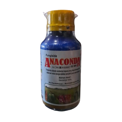 Anaconda 50WP merupakan Fungisida sistemik berbentuk tepung (WP) dengan bahan aktif Benomil 50%. Diformulasikan untuk mengendalikan penyakit jamur dari dalam jaringan tanaman, memberikan perlindungan yang menyeluruh dan tahan lama.