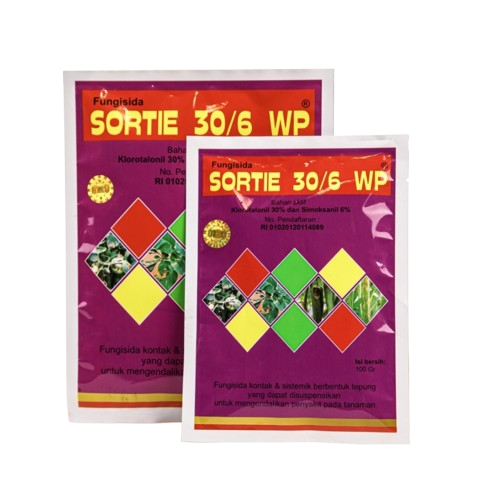 Sortie 30/6WP merupakan Fungisida kontak & sistemik dengan dua bahan aktif, Klortalonil 30% dan Metalaksil 6%. Berbentuk tepung (WP) yang memberikan perlindungan ganda dari luar dan dalam untuk mengendalikan penyakit jamur.