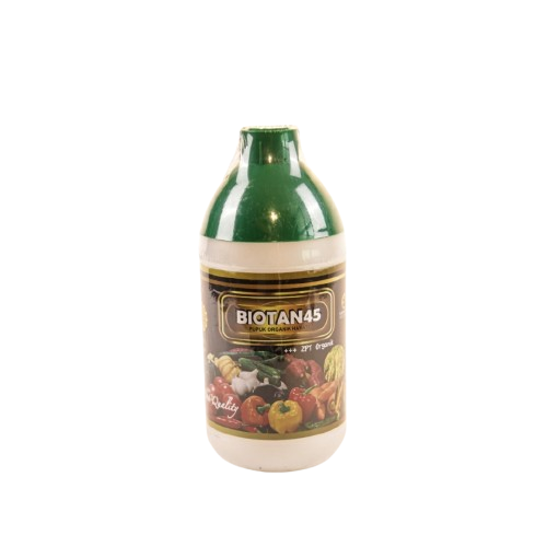 Biotan 45 merupakan Pupuk organik cair (POC) super yang diformulasikan untuk menyuburkan tanah dan menutrisi tanaman secara alami. Cocok untuk semua jenis tanaman sayuran dan buah-buahan.