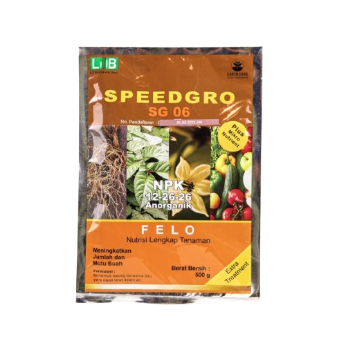 Speed Gro 06 merupakan Pupuk NPK Anorganik dengan formula seimbang Fosfat dan Kalium (12-26-26) plus mikro nutrisi. Diformulasikan khusus untuk meningkatkan jumlah dan mutu buah, serta memaksimalkan hasil panen.